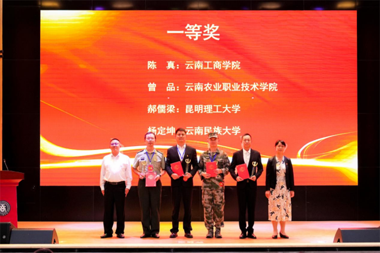 来自全省各高校的参赛教师生动地演绎了军事理论课的教学内容,充分展现了全省高校军事课教师良好的精神风貌。经过激烈角逐,此次决赛最终产生一等奖4名,二等奖6名,三等奖10名,现场举行了颁奖仪式。云南省教育厅体卫艺处处长刘天才,云南省军区战建局参谋汤中仁,云南省军区政工局校营级正职干事柯穴,云南工商学院执行董事长姬其佐、党委书记李国琼、校长蒋永文、副校长马晓红出席仪式。