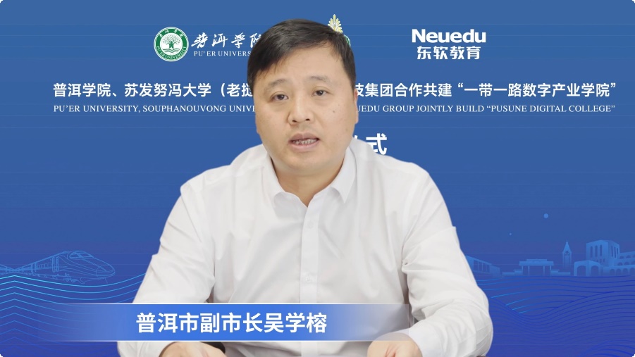 普洱市副市长吴学榕在致辞中表示,希望三方共建的“一带一路数字产业学院”能够更深层次融入和服务于普洱市经济社会发展,普洱市将全力支持该学院打造为有特色、高水平的示范性国际化产业学院。