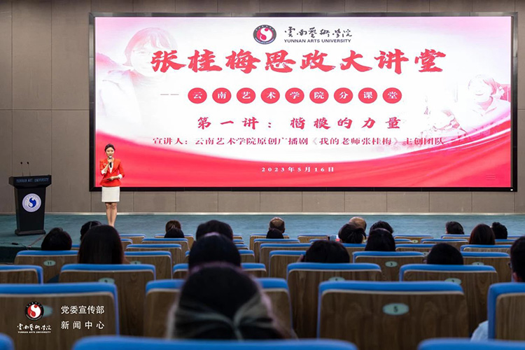 5月16日,张桂梅思政大讲堂云南艺术学院分课堂开讲。分课堂第一讲以“楷模的力量”为题,邀请云南艺术学院原创广播剧《我的老师张桂梅》主创团队分享创作起源及历程。