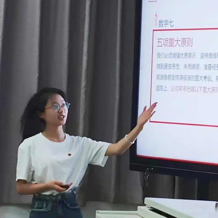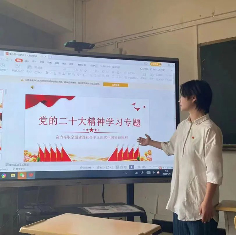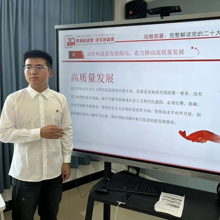 李宸熙:非常荣幸能成为宣讲团的一员,在宣讲活动中不管是对于宣讲课件的雕琢,还是在台上宣讲党的二十大精神都让我受益匪浅,同时这些经历也让我更加深刻的理解了党的二十大精神内涵,更深刻的明白了当代年轻人应该做什么,应该怎么做,在未来的生活学习中我将更加积极努力学习提升理论素养,以宣讲员为桥梁,将党的二十大精神“声”入人心,将党的声音传递到每一位青年学子的心中!