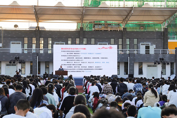 他谈到,中国大学最主要特征,一是坚持中国共产党领导;二是坚持马克思主义根本指导地位;三是坚持党的教育方针。在大学生活中,同学们要明辨是非,保持理性思考,坚定不移听党话、跟党走。他还从学校的办学情况、校训、办学定位、办学愿景、办学特色以及党建引领思政工作育人体系主要特色等方面详细介绍了学校的具体情况。