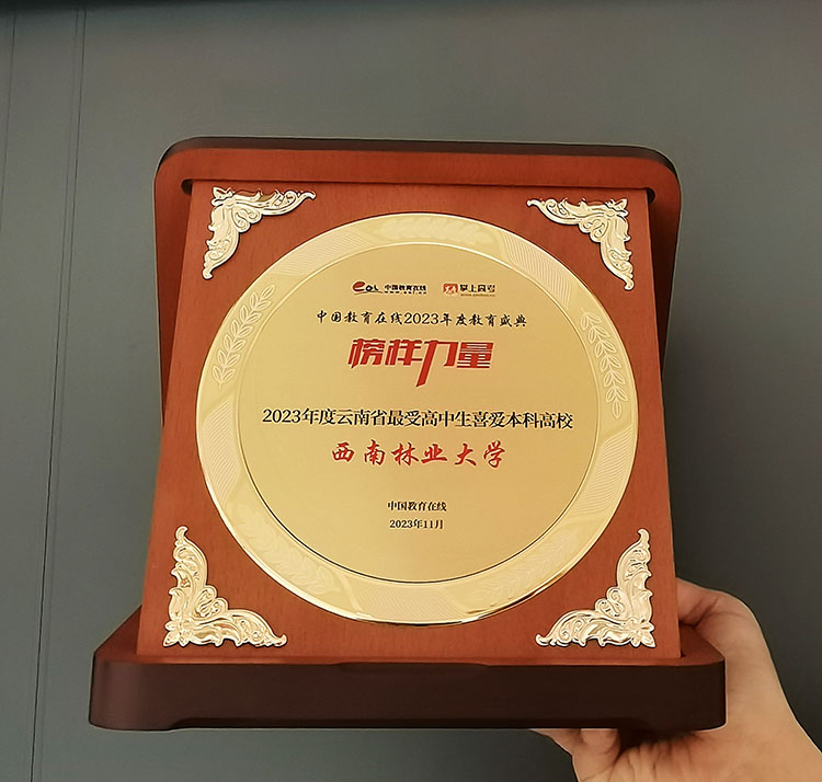 近日,中国教育在线“榜样力量·2023年度教育盛典”评选获奖名单揭晓,在本次评选活动中,西南林业大学凭借卓越的品牌影响力和办校实力/深厚的学术积淀,荣获“2023年度云南省最受高中生喜爱本科高校”的称号。