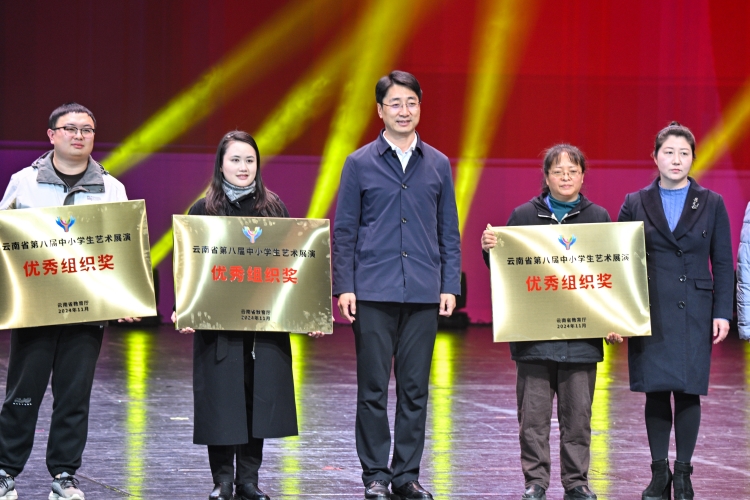 闭幕式中还分别为云南省第八届中小学生艺术展演展览活动小学组、中学组一等奖作品及优秀组织奖颁奖。