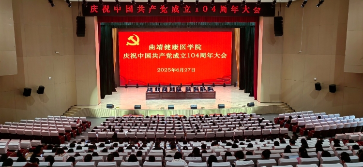 6月27日,曲靖医学高等专科学校在汇韵馆学生会堂召开庆祝中国共产党成立104周年大会暨党员、干部基本培训开班仪式。曲靖医学高等专科学校党委领导班子成员、中层干部、全体教职工党员参加会议。大会由党委副书记桂发权主持。