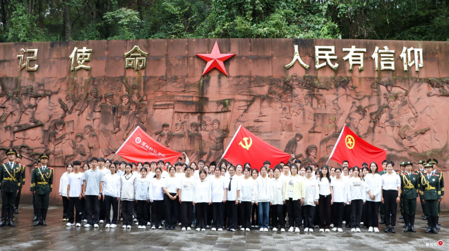 在纪念碑前,师生们奏唱国歌、敬献花篮,表达对为民族独立和共和国建设英勇献身烈士的深切缅怀之情。在肃穆氛围中,党员师生重温入党誓词,团员师生重温入团誓词,铮铮誓言彰显了新时代青年坚定不移传承红色基因、勇担复兴使命的信念。