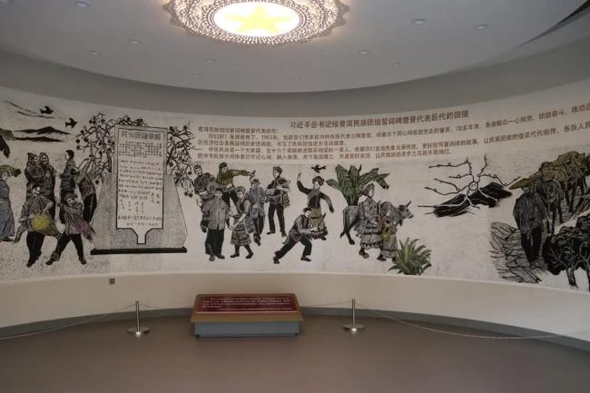 在云南普洱这片多民族共生共荣的土地上,普洱学院铸牢中华民族共同体意识教育馆如纽带般串联起专业特色、民族文化与红色基因。自建成以来,这座集科学性、思想性、资料性、教育性于一体的综合性平台,始终围绕习近平总书记关于铸牢中华民族共同体意识的重要论述,以打造“一碑一塔一基地、一石一馆一示范”的“六个一”工作模式为抓手,将各学院专业优势转化为思政教育动能,让“中华民族一家亲,同心共筑中国梦”的理念在师生心中落地生根。
