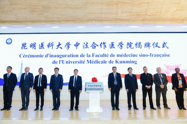 开幕式上,昆明医科大学与法国洛林大学南锡医学院合作共建的“昆明医科大学中法合作医学院”正式揭牌,标志着学校在中法医学教育合作方面迈入新阶段。据介绍,该学院将系统引进法国医学教育的先进模式、课程体系、师资力量及评价机制,开展高层次医学人才联合培养。同时,记录滇法医学教育合作历程的专著《彩云之南的医学之路》正式发布,系统梳理了双方在医学教育领域的合作成果与经验。