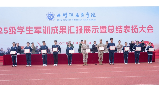 大会对在军训中表现突出的先进集体和个人进行了表彰,学校领导为获奖代表颁发荣誉证书与奖牌,这份荣誉既是对同学们刻苦训练的肯定,也展现了曲医学子团结拼搏、奋勇争先的集体精神与坚韧品格。