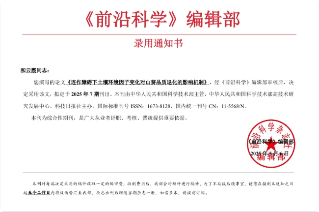 为解决山葵连作障碍,团队系统收集丽江地区连续种植2年、3年的土壤样品,分析病原菌群结构,科研成果《连作障碍下土壤环境因子变化对山葵品质退化的影响机制》已被国际期刊《前沿科学》收录。