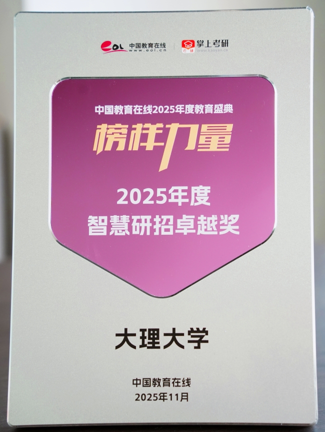 智慧研招赋能创新实践 大理大学荣获“2025年度智慧研招卓越高校”