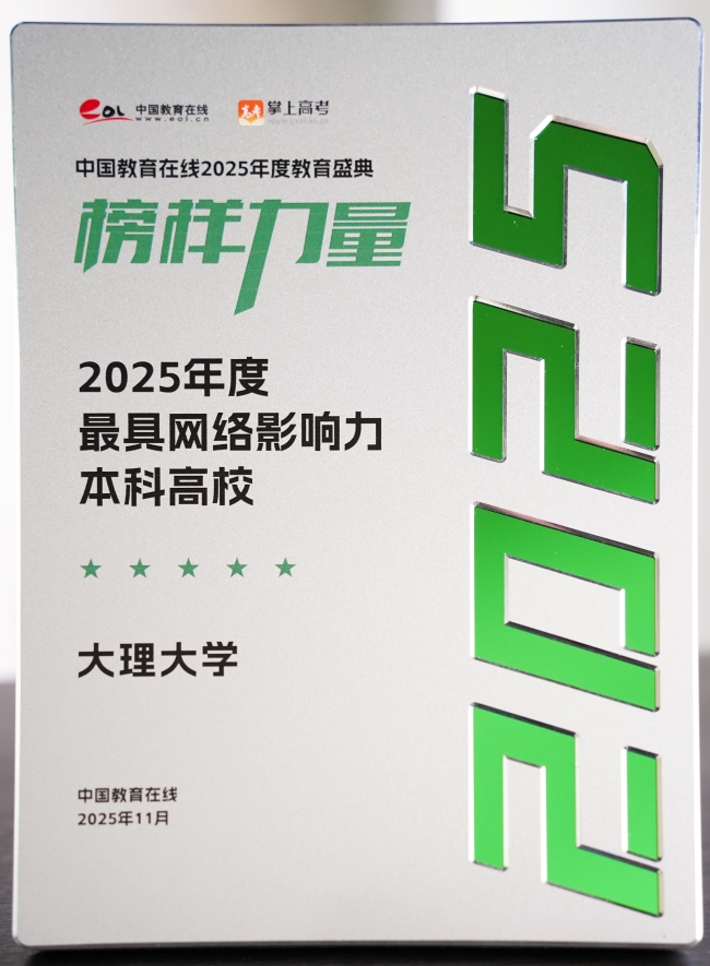 在数字传播与智慧教育深度融合的时代背景下,高校网络形象与线上传播力已成为教育品牌建设的重要维度。近日,中国教育在线“榜样力量·2025年度教育盛典”优秀案例名单公布。大理大学凭借在招生宣传与网络传播领域的创新实践和卓越成效,获评“2025年度最具网络影响力本科高校”。