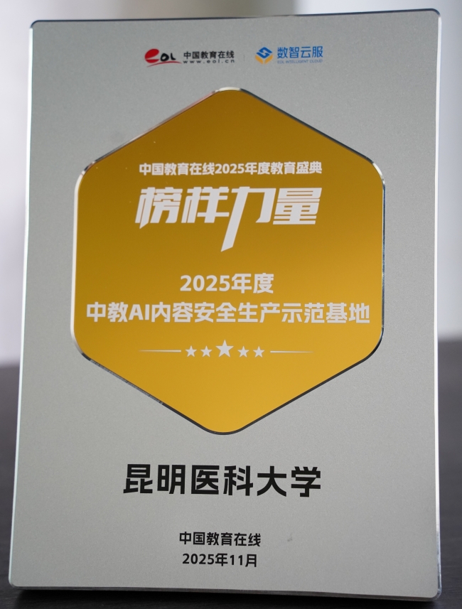 昆明医科大学荣获“2025年度中教AI内容安全生产示范基地”