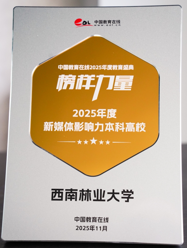 近日,中国教育在线“榜样力量·2025年度教育盛典”优秀案例名单公布。西南林业大学凭借在新媒体领域的卓越成就与深远影响力,荣获“2025年度新媒体影响力本科高校”。