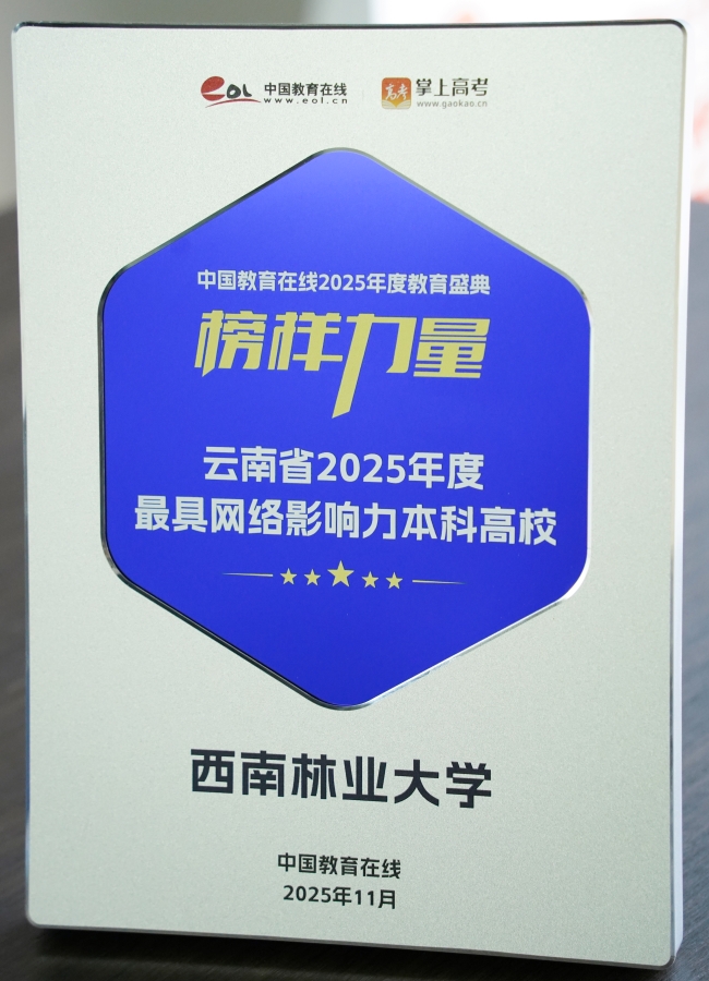 近日,中国教育在线“榜样力量·2025年度教育盛典”优秀案例名单公布。西南林业大学凭借在招生宣传和网络传播领域的创新实践和成效,获评“云南省2025年度最具网络影响力本科高校”称号。