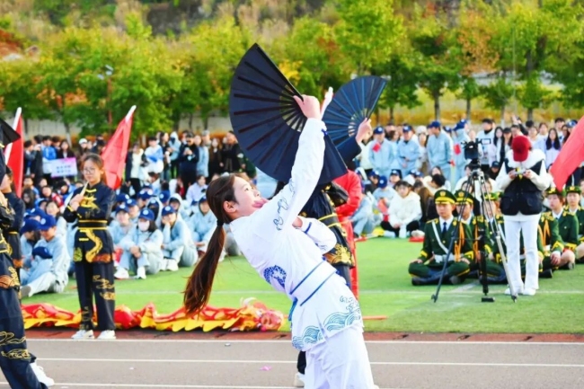 开幕式文体展演为本届运动会增添了浓厚的校园文化色彩——节奏明快的啦啦操、力量舒展的武术表演、整齐划一的队列表演轮番登场,营造出热烈而活力四射的氛围。