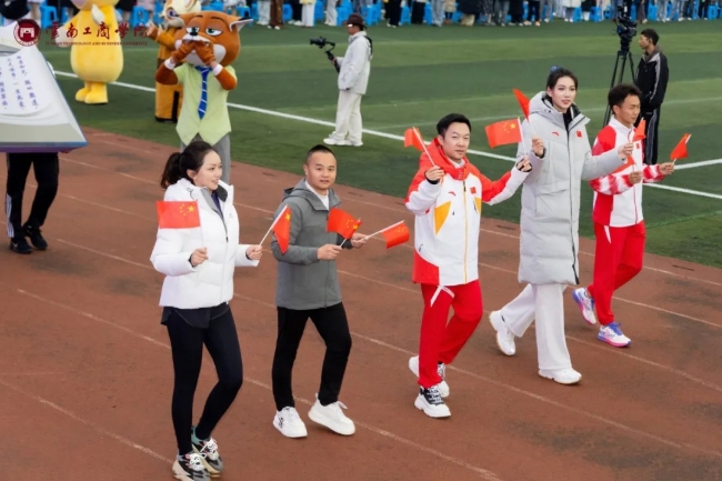 随着云南体育产业学院挂牌仪式圆满礼成,云南工商学院第十七届冬季运动会的序幕随即拉开,二者以“运动”为纽带,实现了无缝衔接与理念共鸣。运动会开幕式以一场别开生面的“体育冠军秀”开场,将现场气氛推向高潮。