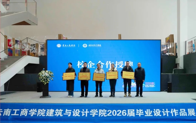 开幕式上,云南工商学院与云南春天礼品牌管理有限公司等十余家企业举行了校企合作签约及授牌仪式。未来,校企双方将聚焦非遗文创开发、数字艺术应用、区域品牌共创等前沿领域,共建校企工作室与实训基地,引入真实产业项目进课堂,共同制定人才培养方案,推动教学内容与行业标准深度融合,进一步深化产教融合,贯通“教学—项目—就业”路径,为学生提供更丰富的实践平台与职业出口,协同服务区域文创产业提质升级。
