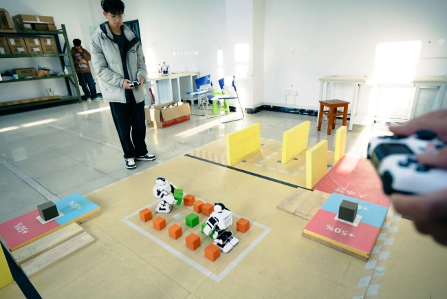 “开机键在哪?程序怎么导入?需要哪些软件?”刚拿到机器人设备时,这些疑问让同学们面面相觑。“我们决定从最基础的硬件入手。对照说明书,逐一找到机器人的舵机、按钮和接口,用一周时间了解它们的构造和作用。”黄伟康回忆道。秉持着“不信这个邪”的精神,参赛团队从面对全新机器人设备时的茫然无措,到最终实现熟练调试的突破,经历两个月时间完成了从“技术小白”到“操作能手”的蜕变。
