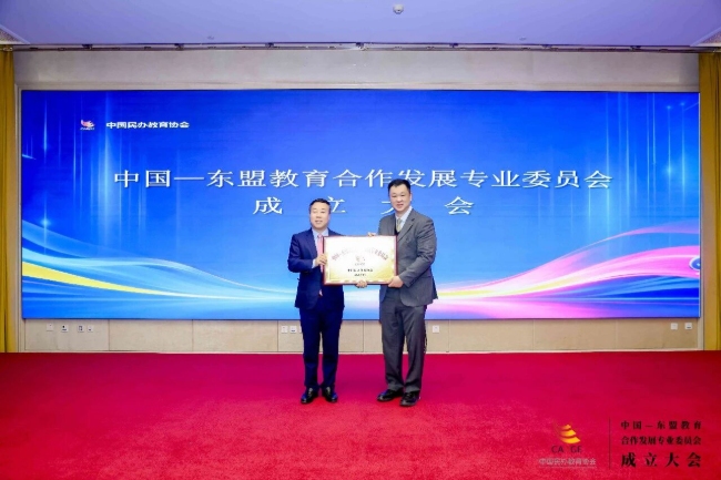当天下午,中国民办教育协会中国—东盟教育合作发展专业委员会成立大会在北京举行。来自全国民办教育界的代表、专家学者、企业负责人及东盟相关机构代表共聚一堂,共同见证这一历史性时刻。