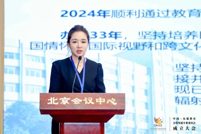 会上,何雨珊发表了题为《深耕区域合作,贡献云南力量 共同推动中国—东盟教育协同发展》的交流发言,分享了云南经济管理学院在国际化办学,尤其是与东盟国家教育合作方面的实践与探索。