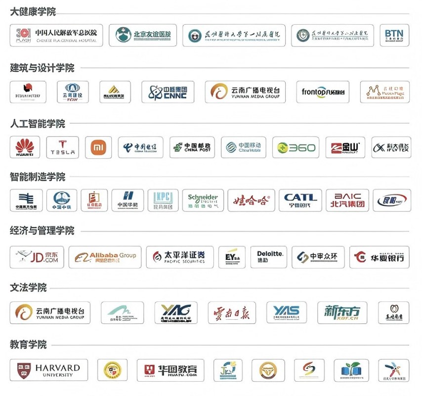 云南工商学院携手华为、阿里、京东、360等500余家行业巨头,共建13个产业学院,联合北京301医院 、北汽、昆明船舶集团等300余家单位打造高水平实习实训基地