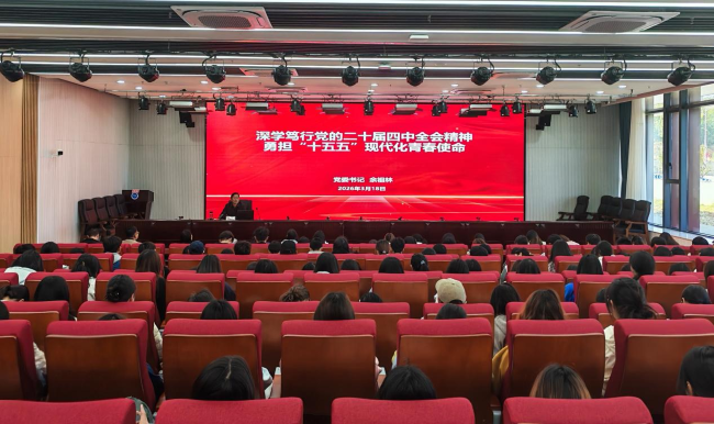 余祖林深入阐释了党的二十届四中全会精神的核心要义,系统解读了全会所擘画的发展蓝图,并重点阐述了“十五五”时期经济社会发展的战略任务。他结合学校“十五五”建设发展重点任务、师生关切的具体案例,剖析了当前医学变革与发展动态,分析了学校建设面临的机遇与挑战。针对医学生的职业发展,他表示,学校积极践行“健康第一”教育理念,新时代医学生的职业角色定位,不应局限于传统的临床诊疗,更应勇担重任,争做校园健康的引路人、社区健康的守护者,成为健康理念转型中坚定的引领者和实践者。他鼓励同学们积极关注预防医学与健康科普领域,将专业知识转化为提升全民健康素养的实际行动,在助推践行“主动健康”的实践中实现个人成长与社会贡献的同频共振。