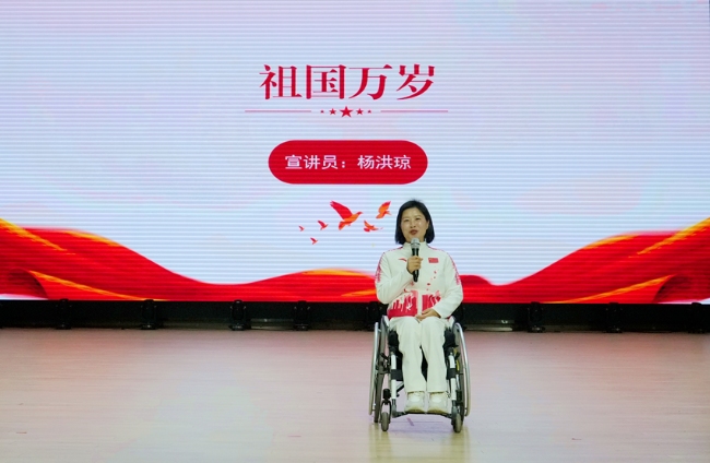 北京冬残奥会“三冠王”、曲靖籍运动员杨洪琼以《祖国万岁》为题,回顾了自己在人生赛场上不认命、不服输、顽强拼搏、自强不息,勇夺冬残奥会“三冠王”,实现人生价值的奋斗历程。她激励广大曲医学子要坚定理想信念、厚植家国情怀,把个人理想追求融入国家和民族事业中,勤学善思、努力拼搏,在人生道路上要不抛弃、不放弃,敢于直面困难和挫折。