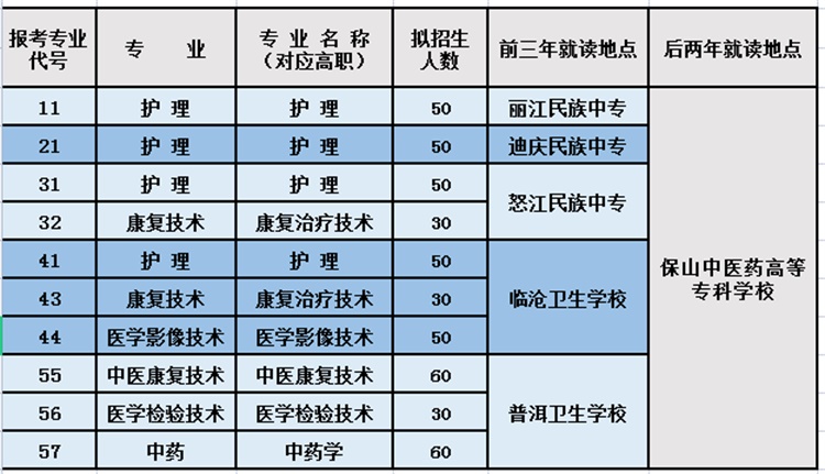 保山中医专2023年五年制大专招生计划一览表