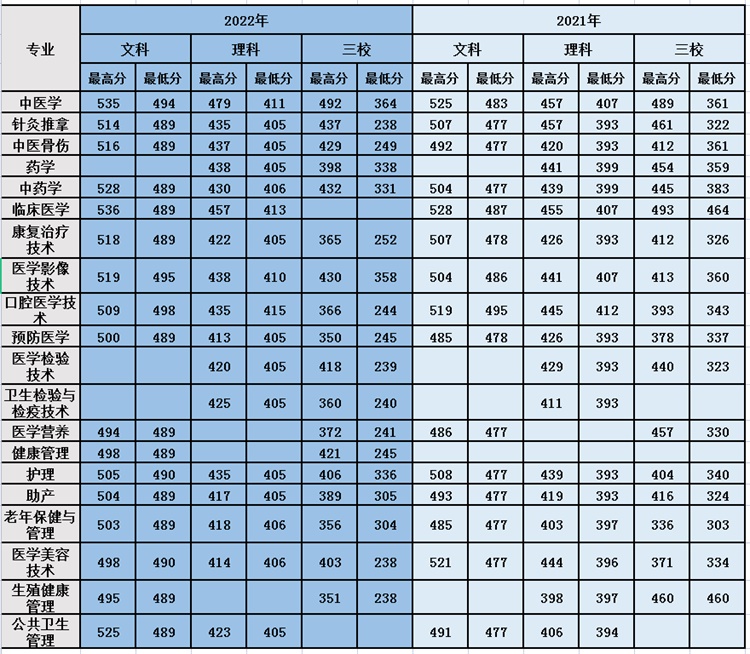 5.我校招生专业录取规则:考生达到录取分数线后,根据考生报考专业志愿(“志愿优先”原则)、按高考成绩从高分到低分进行专业录取。若考生所报第一专业志愿录满,则依据考生所报其他专业志愿顺序录取。当考生所报专业志愿都无法满足时,对服从专业调剂的考生,由学校调剂到相应专业录取,对不服从调剂的考生予以退档。同等分数情况下,专业志愿在前者优先录取。助产专业限招女生,其他专业无男女考生比例限制,对往届生和应届生的录取无差别。