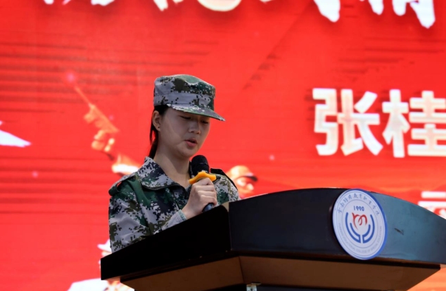 2025级特殊教育专业新生任慎敏作为新生代表发言,她表示要以英雄精神为指引,把坚守与担当融入未来教育实践,为更多特殊儿童带去希望与自信。