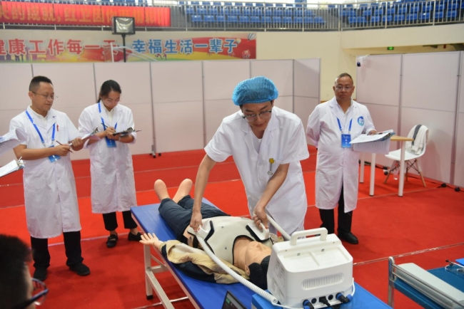 临床技能赛项以模拟真实临床场景为核心,设置理论知识考核、实操技能展示等环节,全面检验选手的医学理论储备、临床思维逻辑、应急处理能力。赛场上,身着白大褂的选手们面对模拟病患,从容完成病史采集、病例分析、心肺复苏、除颤、临床技能操作等流程,操作娴熟规范,充分展现出扎实的专业基础与良好的职业素养。