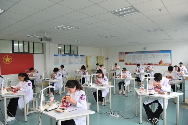 口腔医学技术赛项则侧重实操能力考核,参赛选手围绕牙体雕刻、蜡型滴塑、全口义齿排牙三个核心技能展开角逐。比赛现场,选手们细致雕琢牙齿模型,在形态还原、咬𬌗功能等方面精益求精,生动诠释了追求卓越的“工匠精神”。