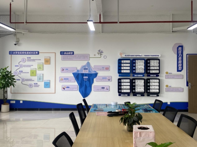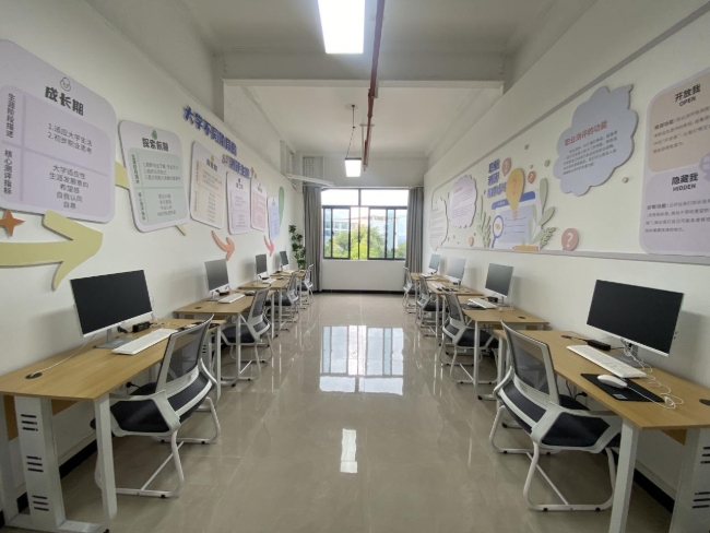工作室设有十大功能区域,包括测评室、团体辅导室、直播室、生涯体验室、教师值班室、路演室、面试室、创业综合模拟实训室、个体咨询室,“织梦筑基”职业生涯咨询工作室用科技与温度助力学生筑梦未来。