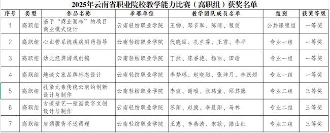 此外,在2025年云南省职业院校教学能力比赛(高职组)中,学校荣获一等奖4项、三等奖3项,这一成绩也从侧面反映出,竞赛不仅提升了学生的能力,也推动了教师教学能力的进步,形成了“以赛促教、以赛促学、以赛促就”的良性循环。