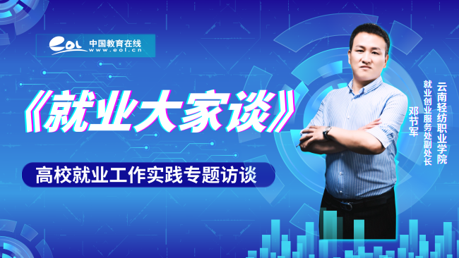 云南轻纺职业学院 就业创业服务处副处长 邓节军:今年我校就业指导工作的总体思路紧扣国家“稳就业”“保就业”战略部署,围绕云南省产业升级需求,以“提质增效、精准服务”为主线,构建“全员联动、产教融合、数字赋能”的就业服务体系。