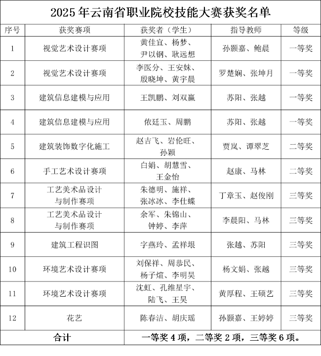 创新设计赋能育人 云南轻纺职业学院艺术设计学院在2025年省职业技能大赛中斩获12项大奖