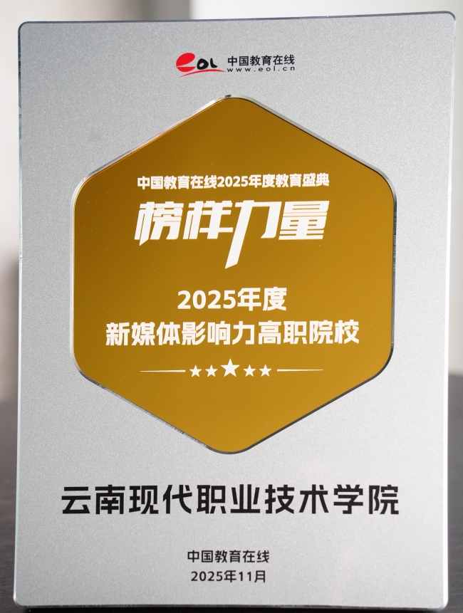 云南现代职业技术学院荣获“2025年度新媒体影响力高职院校”