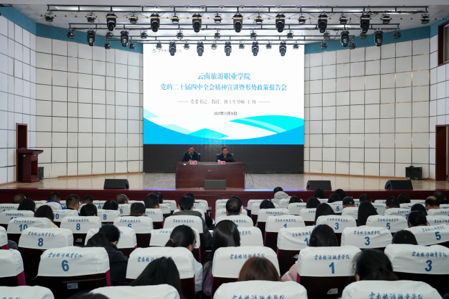 11月27日,云南旅游职业学院举行党的二十届四中全会精神宣讲暨2025年云南省高校百场形势政策报告会。会上,学校党委书记王翔作专题宣讲报告,党委副书记王敏主持,该校500余名师生代表参加。