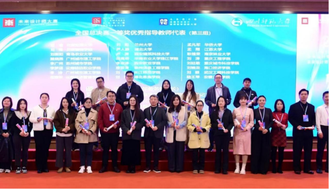 近日,第13届未来设计教育论坛暨2025未来设计师·全国高校数字艺术设计大赛(NCDA)颁奖典礼在四川成都举行。艺术设计学院李梦瑶、赵晓阳两位教师受邀出席,代表学校领取“国潮・非遗设计赛道”一等奖。