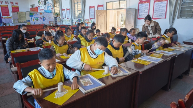 非遗走进社区课堂 保山职业学院“爱心妈妈”陪伴儿童乐学古法造纸