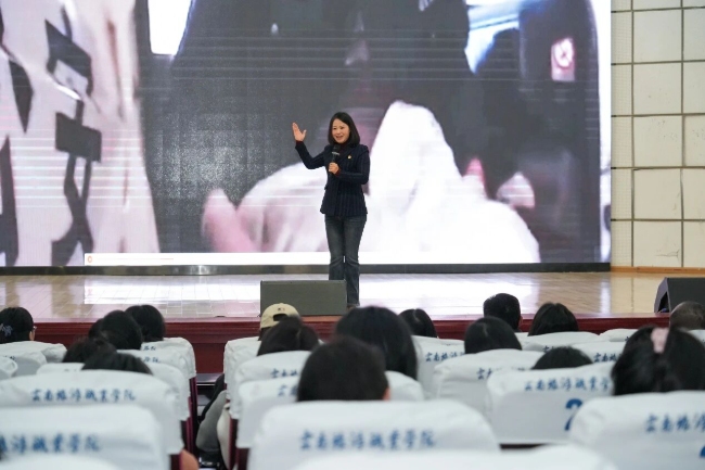 宣讲中,肖薇以生动史实和鲜活故事,系统阐释长征队伍在云南的转移及特殊意义、红军长征精神的核心内涵、长征精神对“旅游人”的助力作用,激励师生在新时代新征程上赓续红色血脉、走好新时代的长征路。崔恩铭则创新性采用说唱、视频讲解等富有感染力的叙事方式,深情讲述伟大抗战精神在云岭大地的生动实践,引导青年把爱国之情、强国之志转化为报国之行。