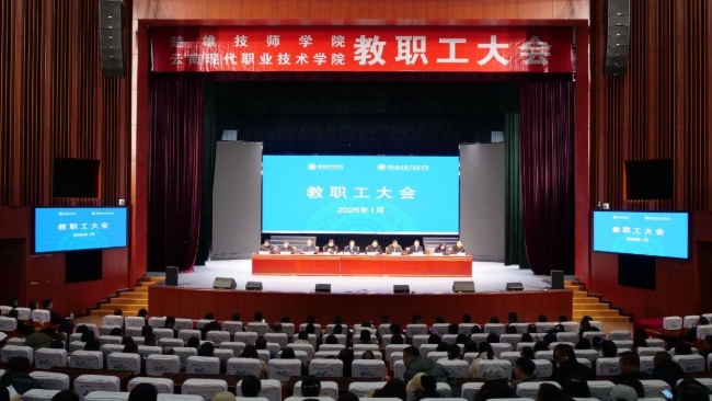 1月10日下午,楚雄技师学院 云南现代职业技术学院召开2025—2026学年上学期期末教职工大会。会议全面总结学院一年来改革发展取得的阶段性成果,深入分析当前形势与存在问题,对寒假期间重点工作进行安排部署,并对新一年推动学院高质量发展作出总体谋划。