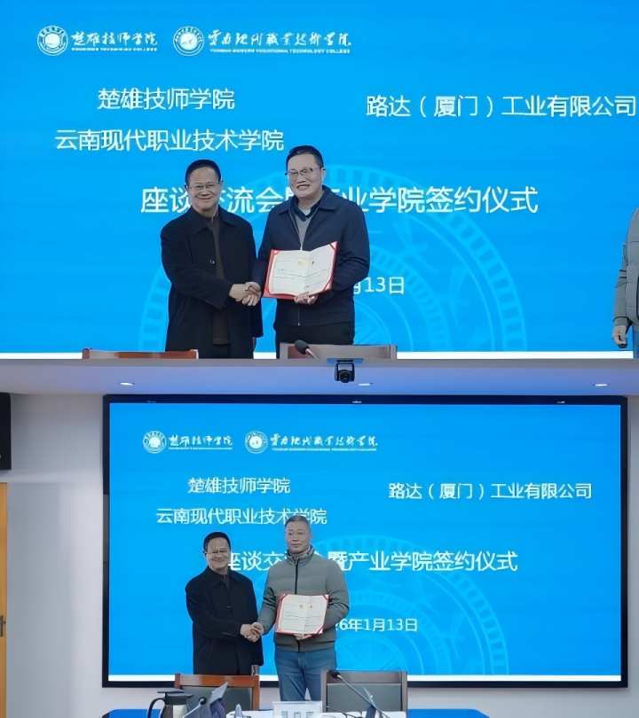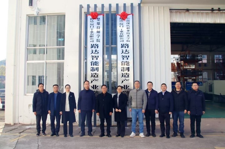 1月13日上午,楚雄技师学院 云南现代职业技术学院同路达(厦门)工业有限公司合作共建的"路达智能制造产业学院"揭牌仪式隆重举行。学院党委书记王若舟与路达(厦门)工业有限公司人力资源总监周玲共同为产业学院揭牌,此举标志着校企双方的合作迈入了共建共赢的新阶段。