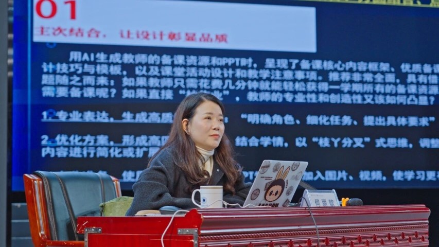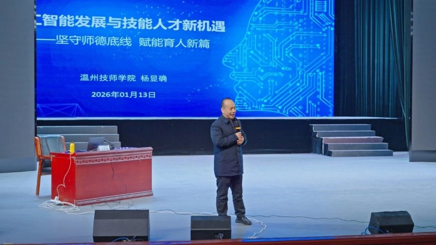 培训首日注重理论引领与实践衔接。上午,温州技师学院党委委员、副校长杨显确以《人工智能发展与技能人才新机遇:坚守师德底线赋能育人新篇》为题授课,深刻阐释了AI时代教师的角色定位与育人使命,为参训教师提供了AI与教育融合的新思路。下午,温州技师学院骨干教师聚焦《AI赋能教学过程的运用》开展系统讲授,通过案例分析与方法传授,帮助教师搭建起从理论到实践的认知桥梁。同日,学院计算机教师全天跟随专家组深度学习教学设计与课件优化、教学音视频制作等实操技能,为后续线下指导筑牢基础