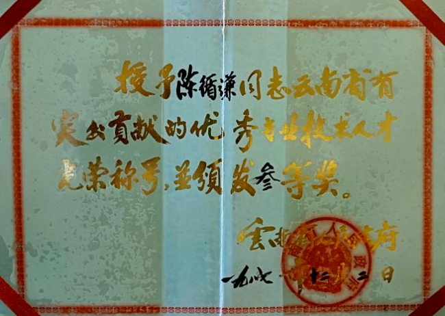 从一名普通的工程技术人员到总工程师,陈循谦主持或参与了数十项重大课题,在国家级和省级专业学术期刊发表论文30篇,出版《泥石流与水土保持》专著1部,获云南省科技进步奖4项,1992年起享受国务院政府特殊津贴,还先后获评“中国水利学会首届优秀中青年水利科技工作者”“云南省第一批有突出贡献的优秀专业技术人才”等称号。