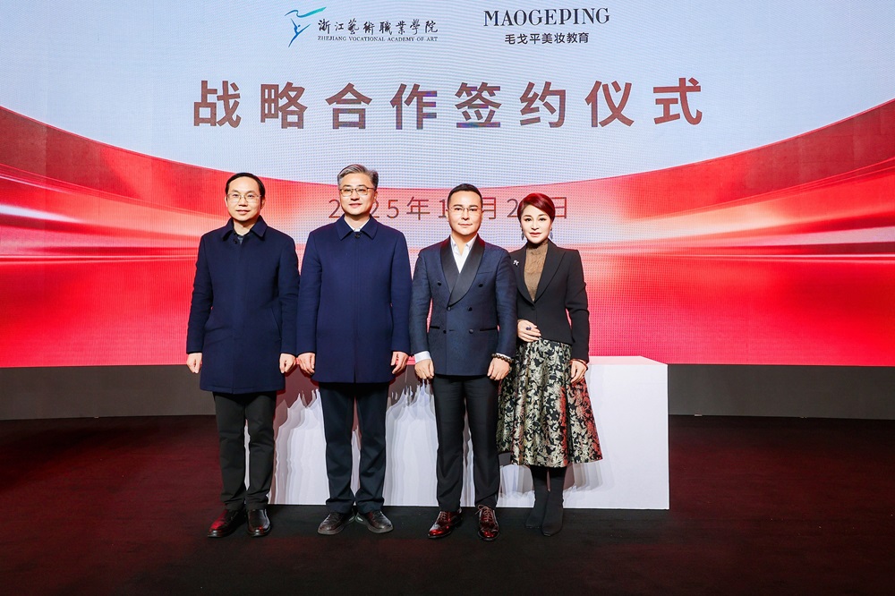 2025年12月20日,一份源于感恩的初心,一次对母校的深情回馈,在浙江艺术职业学院(以下简称“浙艺”)化作切实的行动。毛戈平先生与其夫人汪立群,作为从浙艺走出去的杰出校友,始终铭记母校的培养。他们“让中国女性美起来”的事业初心,与回馈桑梓的深厚情谊,在此刻交汇,共同开启了一次崭新的校企合作——“浙江艺术职业学院毛戈平产业学院”正式成立。
