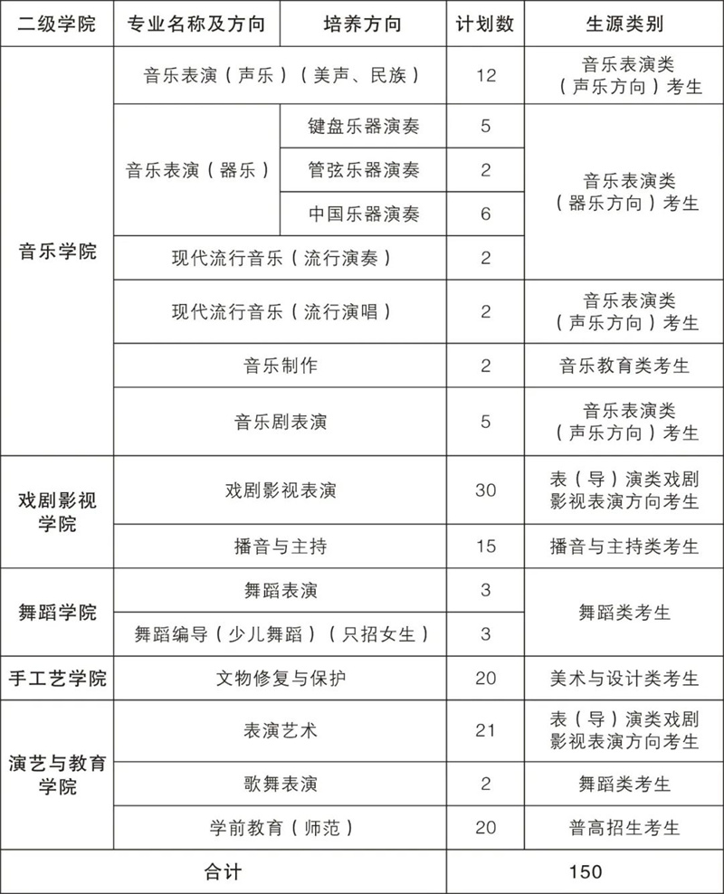 (一)面向普高招生考生150名