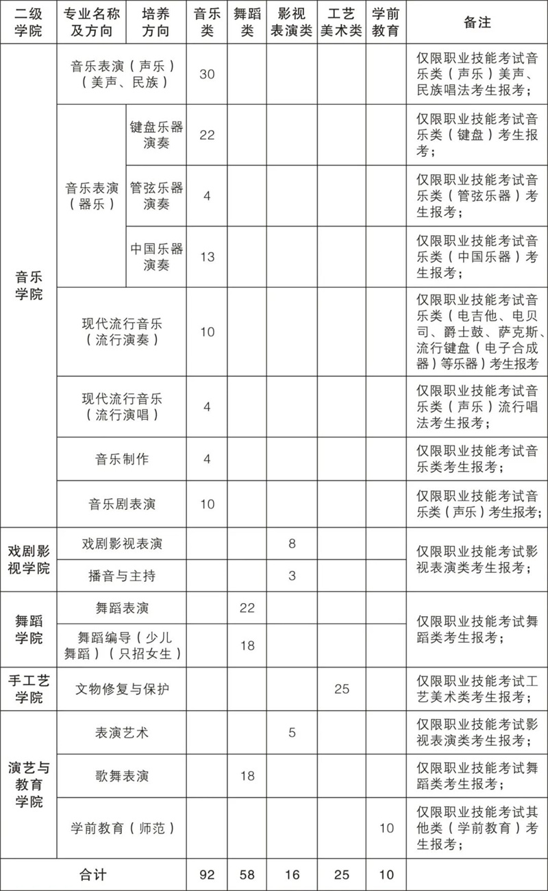 1.音乐类、舞蹈类、影视表演类专业综合成绩=职业技能操作考试成绩/3×0.7+文化考试成绩/3×0.3(音乐制作、歌舞表演、播音与主持、音乐剧表演除外);