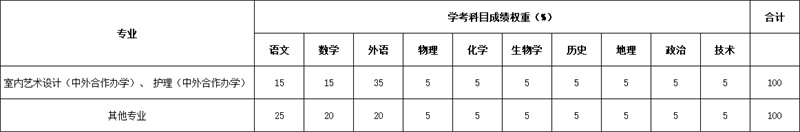 对专业的学考科目成绩权重设置:
