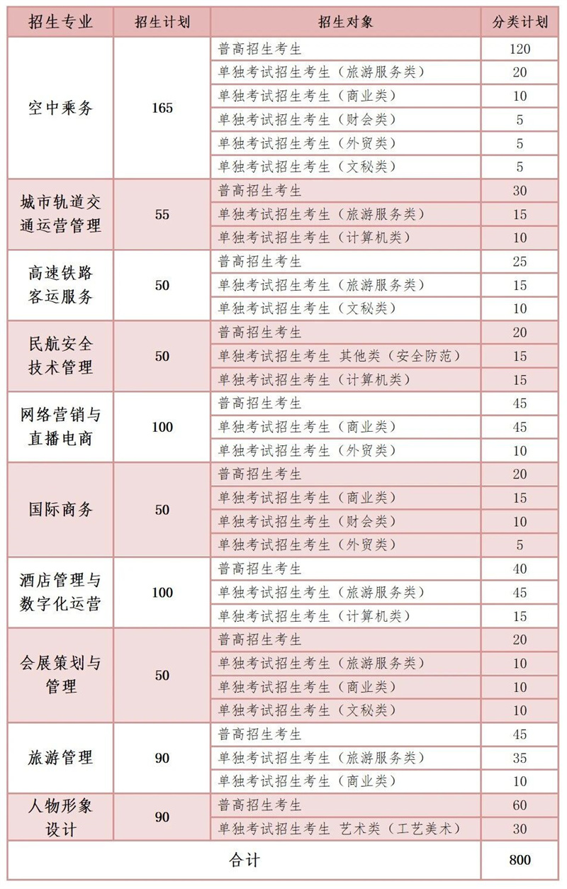 民航安全技术管理、网络营销与直播电商、国际商务、酒店管理与数字化运营、旅游管理、会展策划与管理、人物形象设计专业的考生,学校按综合成绩总分和各类别招生计划,分“拟录取”、“备录取”和“未录取”确定各考生录取情况。进入“拟录取”和“备录取”的考生必须完成该专业综合面试项目。